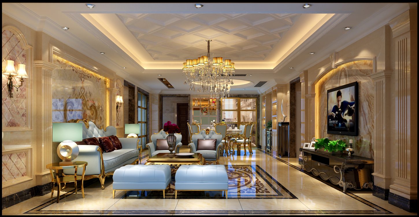 上饶蓝城阁金华轩三居新中式风格装修效果图