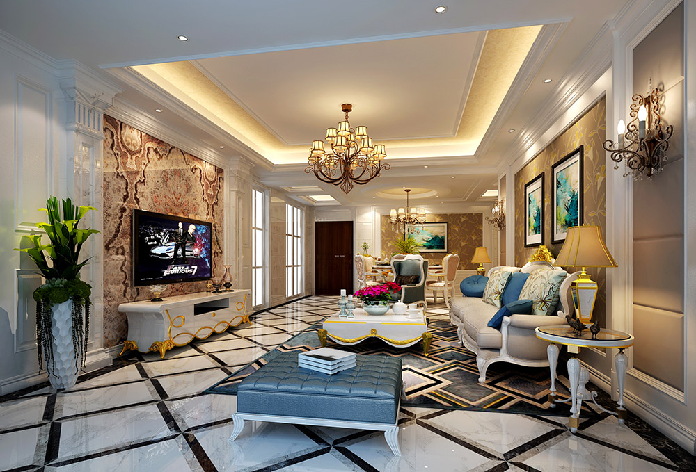 欧式风格室内装修效果图-龙光玖珑湖三居136平米